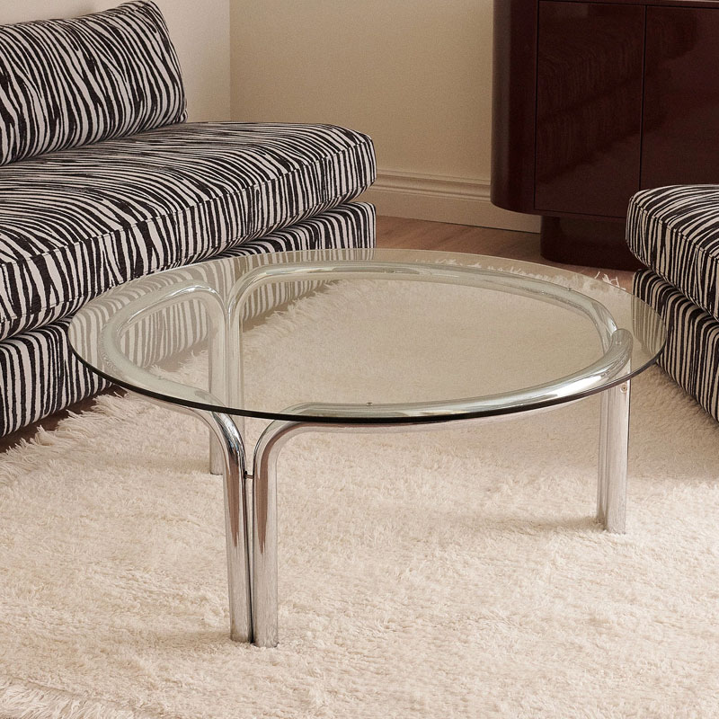 Kromatut metallijalat ja pyöreä lasitaso tekevät Smycka sohvapöydästä tyylikkään osan sisustusta. Metallin jämäkkyys ja lasin herkkyys yhdistyvät upeaksi kokonaisuudeksi tuoden modernia ilmettä olohuoneehuoneeseen.